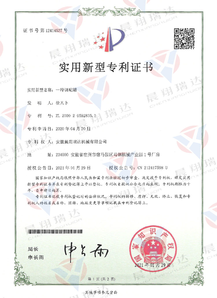 安徽晨翔瑞達機械有限公司(以下簡稱公司),創建于1997年,是一家專注于制藥機械設備、果酒醋生產線設備、調味品生產線設備、飲料生產線設備、豆制品生產線設備、乳食品生產線設備、農林牧副漁產品深加工生產線設備、動物寵物飼料生產線設備、生化反應設備、衛生級流體成套設備及通用機械研發、制造、銷售于一體的高新技術民營企業。產品涵蓋食乳品、飲料、制藥、化妝品、生物工程、油脂、涂料、化工、精細化工等領域的衛生級系列不銹鋼罐槽容器的制造,如雙效濃縮器、不銹鋼攪拌罐、電加熱反應釜、不銹鋼攪拌罐、冷熱缸、老化缸、沉淀罐、配…